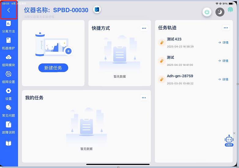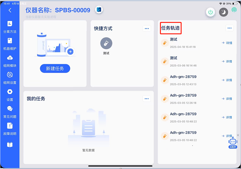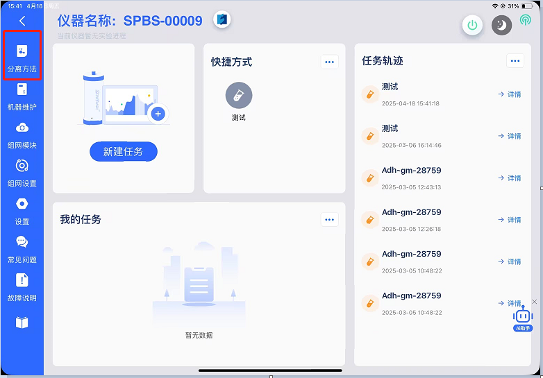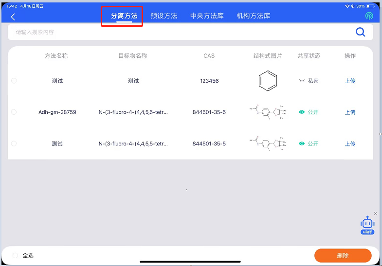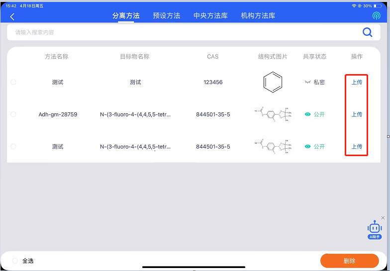 现在说下pad端分离豆上传路径之一:仪器操作→分离方法→分离方法列表选择需要上传的分离方法的任务。
