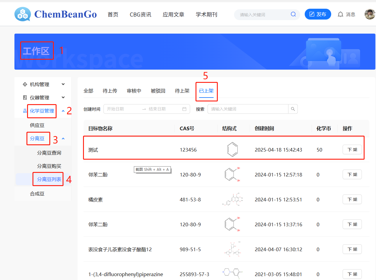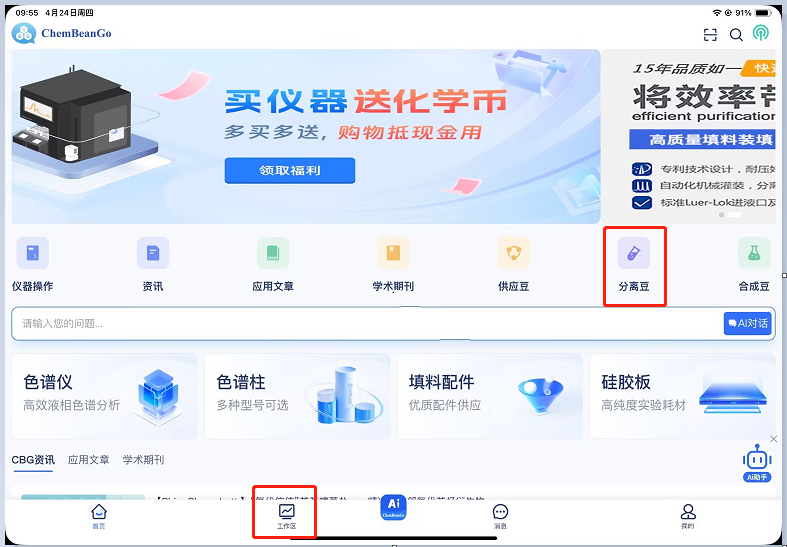 诚邀您加入ChemBeanGo科研共享平台,体验"分离豆"智慧流转新生态!只需按操作指南上传实验分离豆,即可开启您的科研资产转化之旅。上传后的分离豆机构内的科研人员均可从机构方法库内直接调用。成功售出上架分离豆后,将获得可用于兑换色谱柱、实验耗材等科研刚需的化学币奖励!