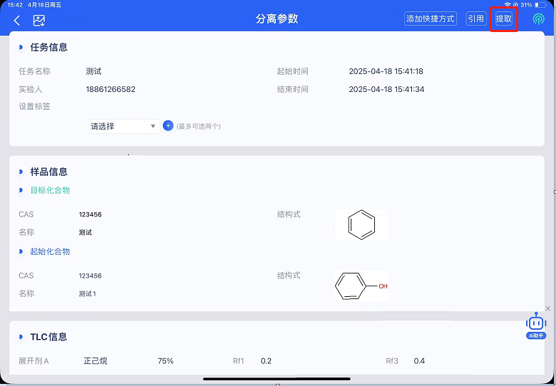 通过仪器操作→任务轨迹→选择需要提取分离方法的任务;