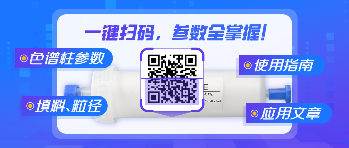 SepaFlash色谱柱产品新增扫码查看参数功能,只需打开手机扫描产品上的二维码,即可快速查看详细参数,无需再翻阅厚厚的说明书或登录复杂的系统。无论是技术参数、使用说明,还是清洗保存信息,统统都能一键获取!