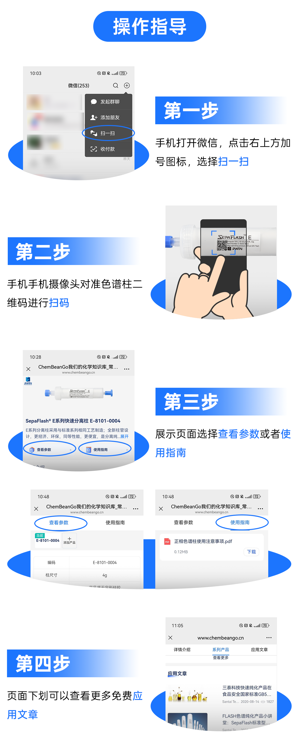 为了解决这一痛点,三泰科技SepaFlash色谱柱产品全新升级,新增扫码即查功能,不仅能快速查看产品技术参数,还能快速下载产品使用指南,让你不再为如何使用而烦恼,更更更重要的是还能免费查看众多应用案例,让你轻松获取产品相关信息,提升工作效率!