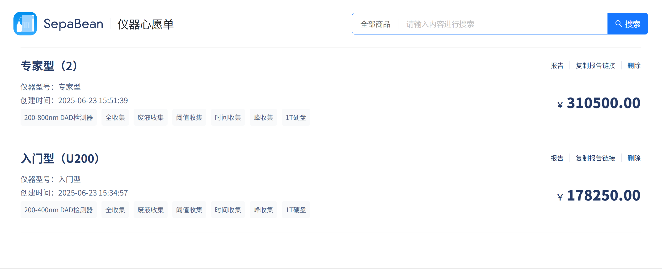 2. 「仪器心愿单」功能:随时保存、管理多套配置方案,方便后续优化或采购。