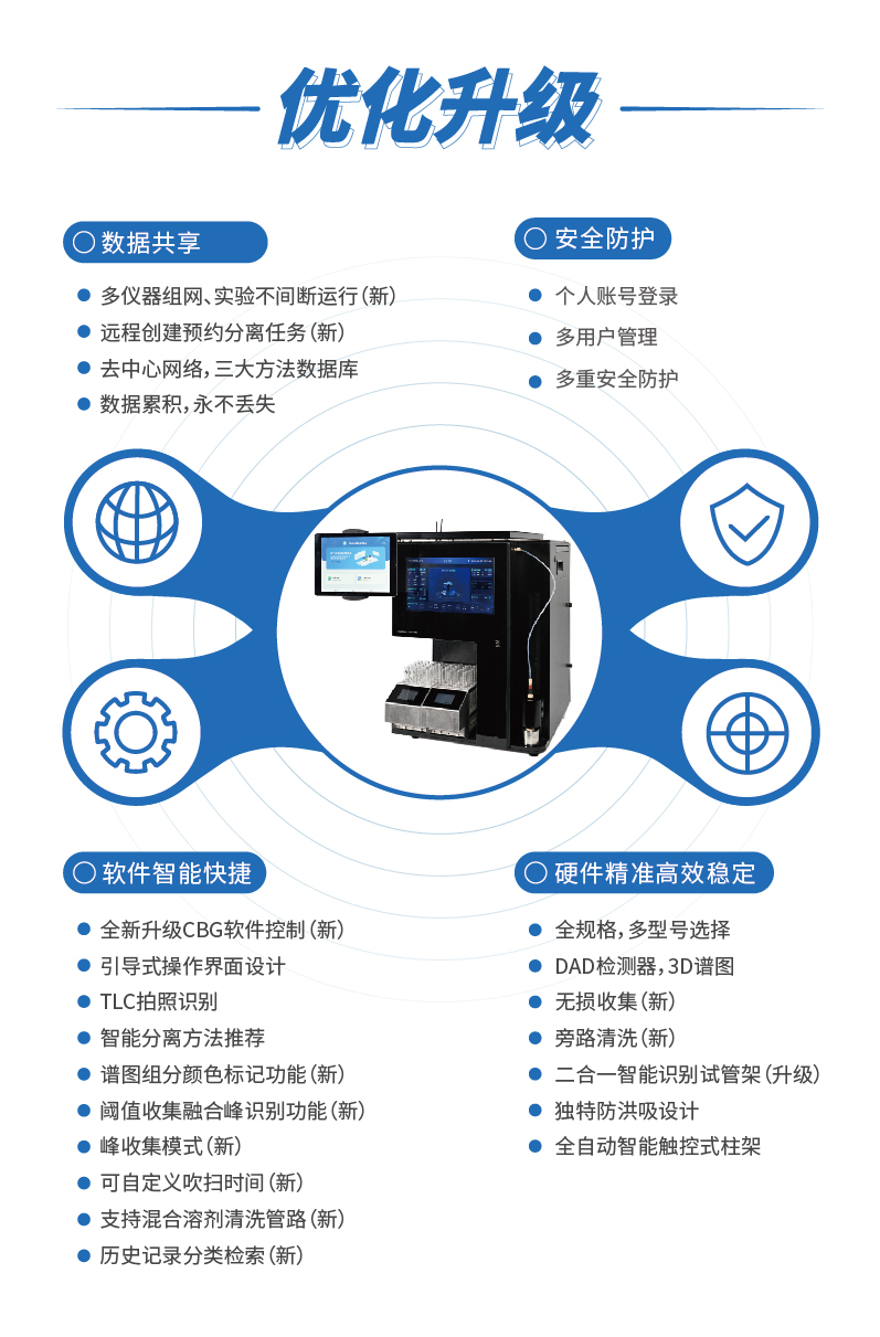具有四路溶剂,方便正反相分离模式溶剂体系切换,同时还具有多种智能化辅助功能。